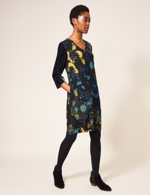 Velvet Floral Knee Length Shift Dress White Stuff M S